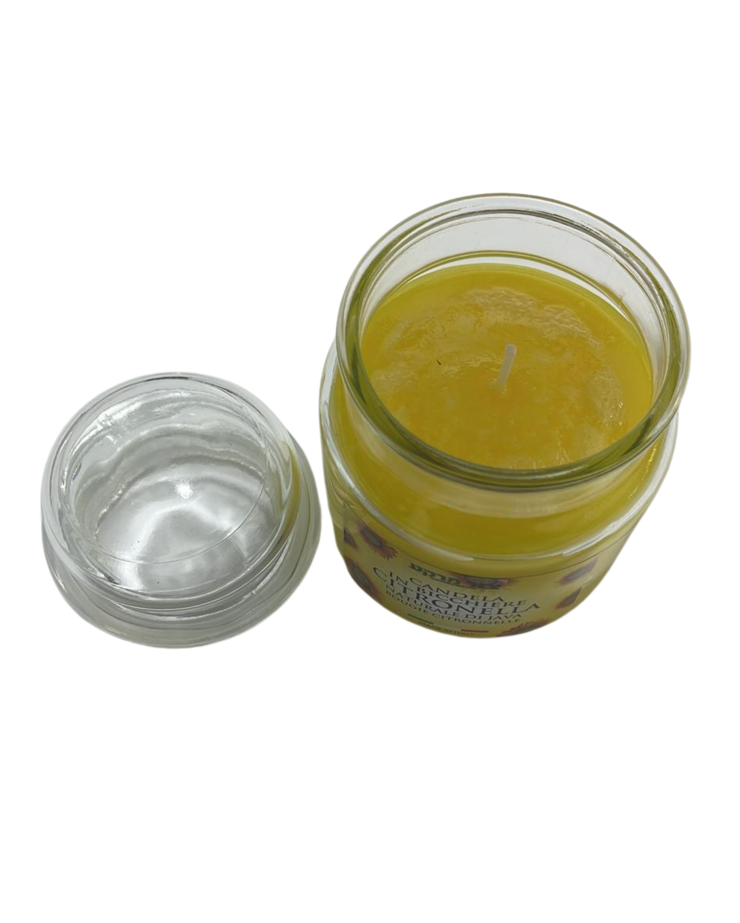 מוכן במיוחד לשימוש פנימי וחיצוני, הנר מכיל 100% שמן ציטרונלה אמיתי ומשקל של 340 גרם.