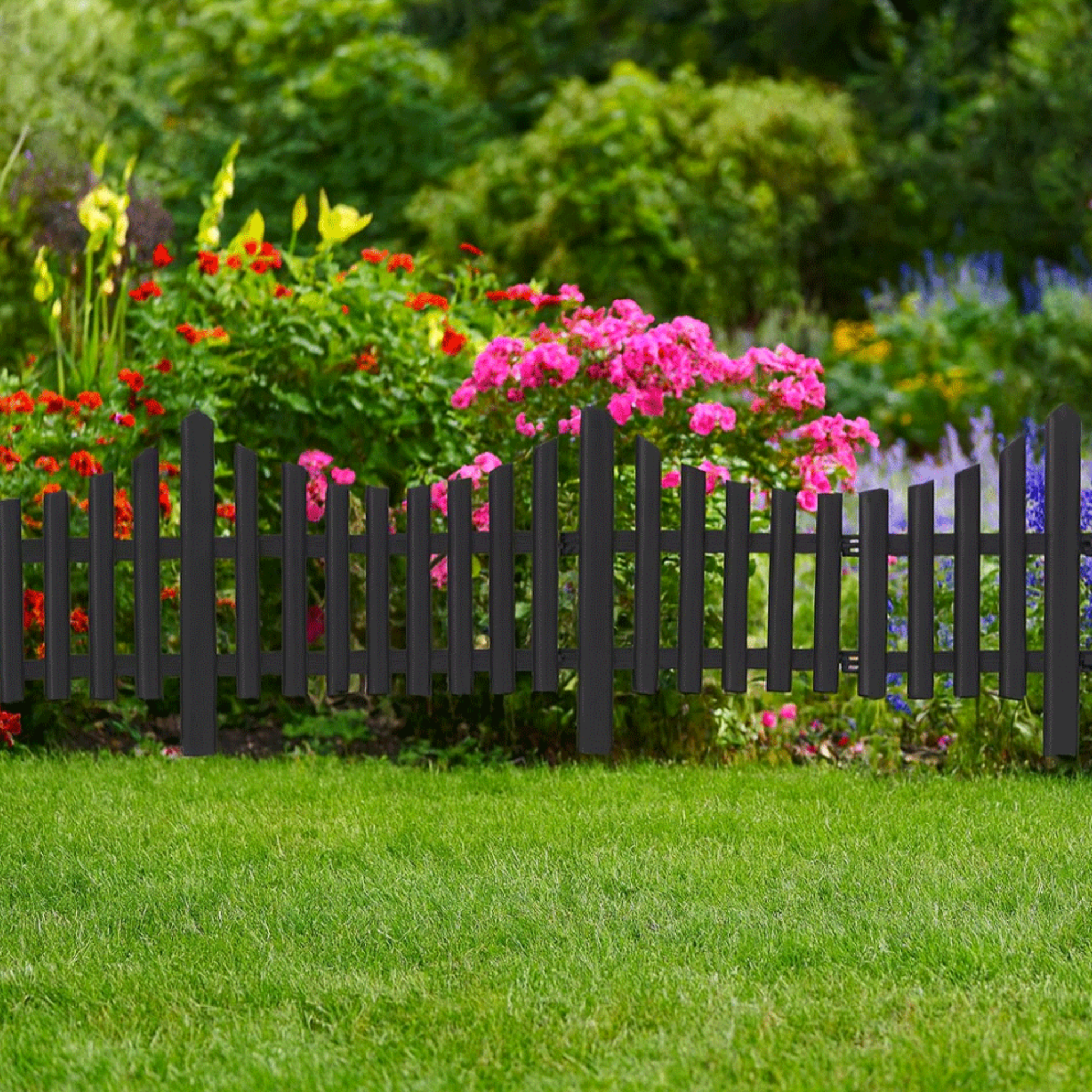 גדר תיחום מעוצבת בסגנון מעקה-כפרי בצבע אפור - סט 4 חלקים בגובה 32.5 ס"מ