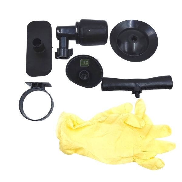 כלי SUPER PUMP לפתיחת סתימות זוג כפפות גומי מקצועיות מתאם 11 ס"מ לפתיחת סתימות בניקוז רצפה מתאם 8 ס"מ לפתיחת סתימות בכיור מתאם מיוחד לשירותים מד לחץ מובנה ידית דחיקה נוחה