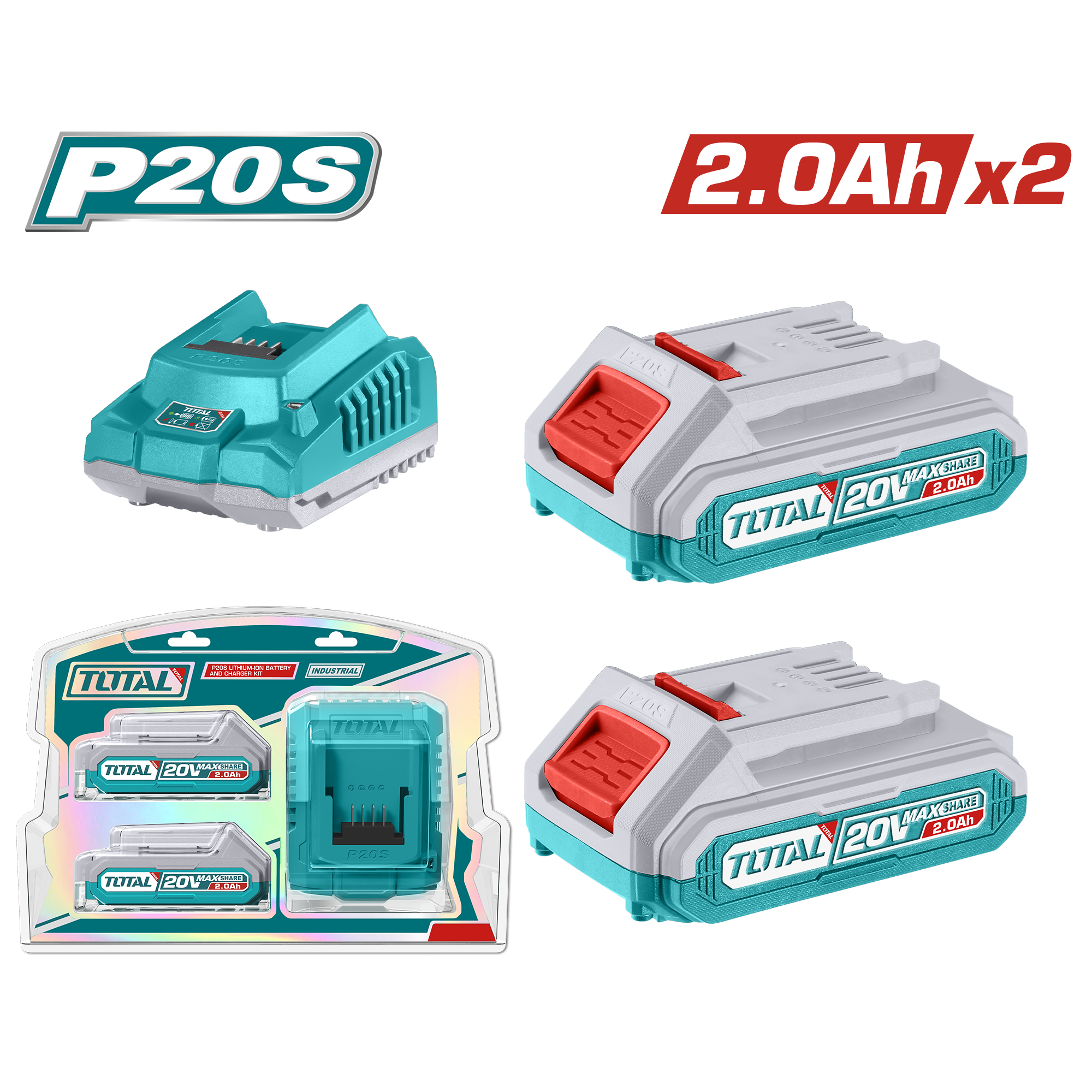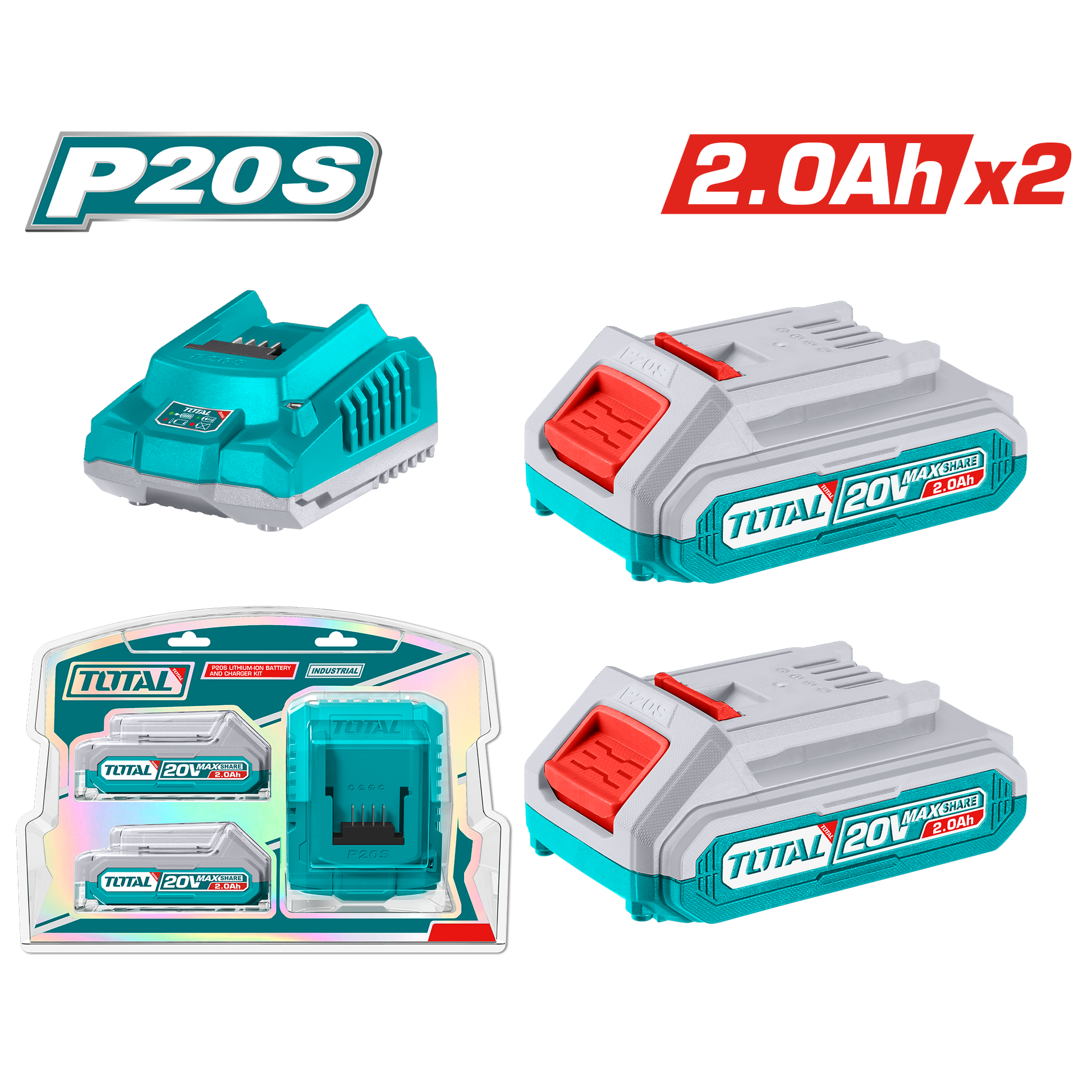סט סוללות ומטען Total Tools P20S - 2 סוללות ליתיום 20V 2.0Ah + מטען חכם