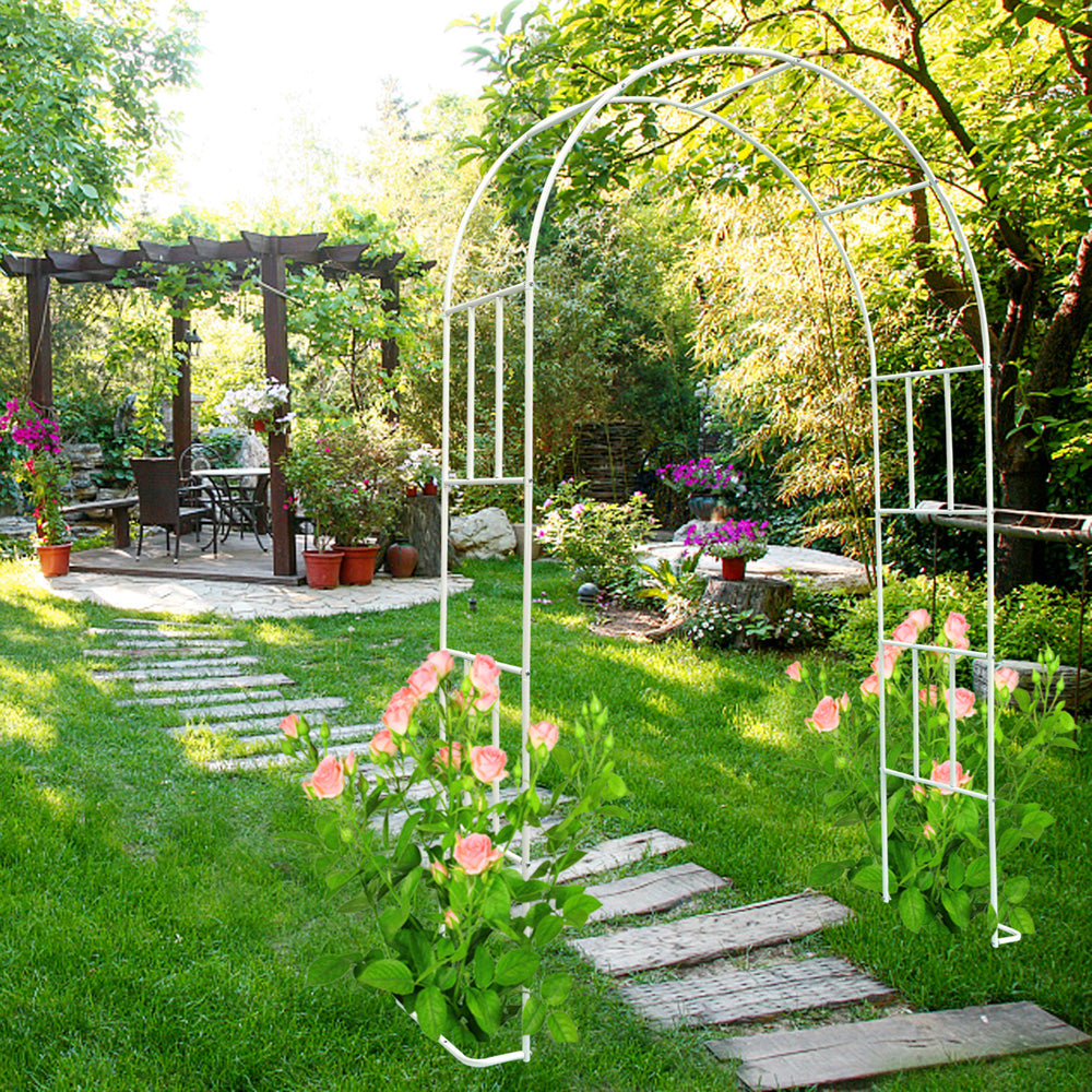קשת רחבה ממתכת לגינה – תומכת לצמחים מטפסים, עמידה ודקורטיבית בצבע אופווייט